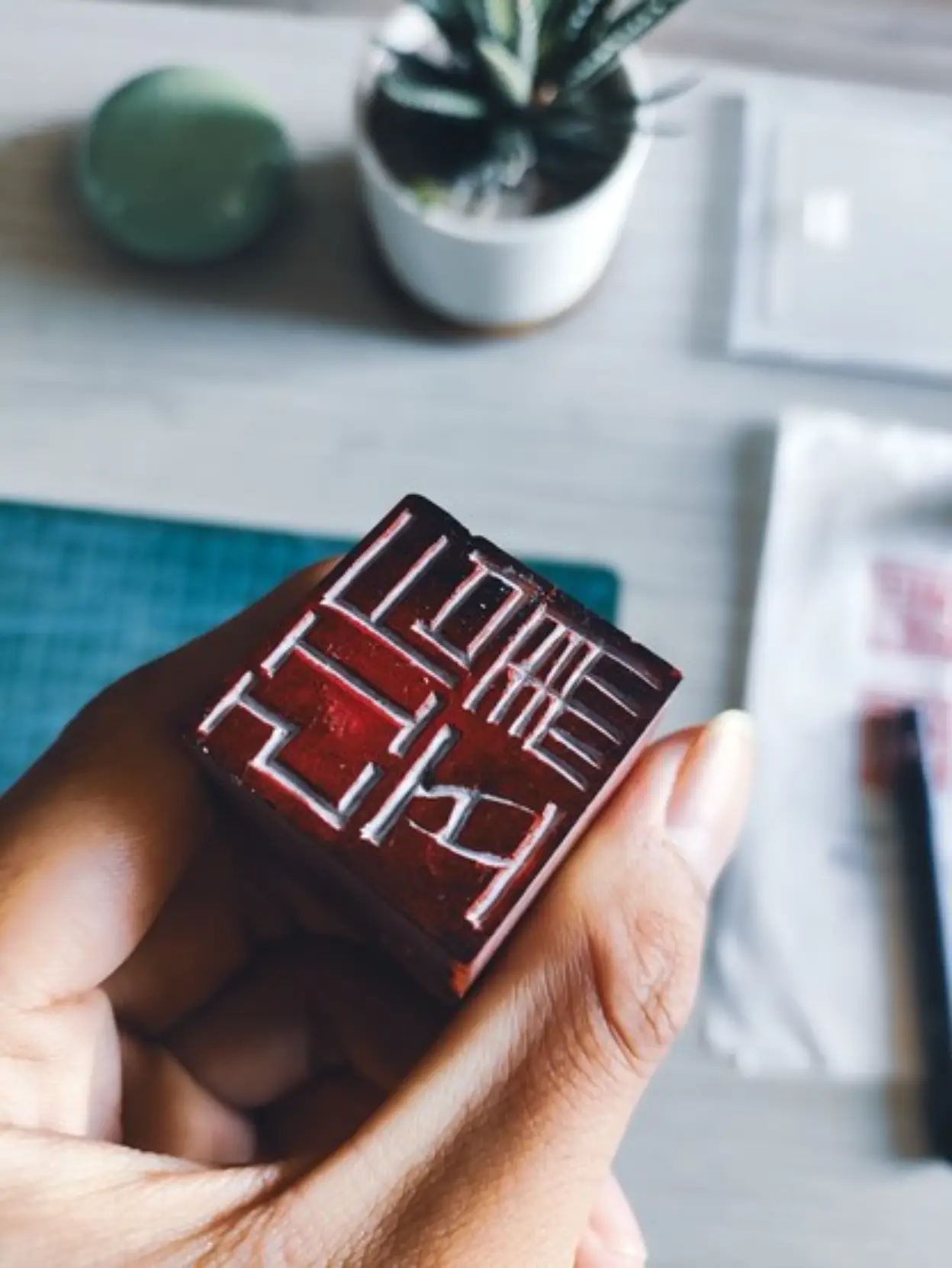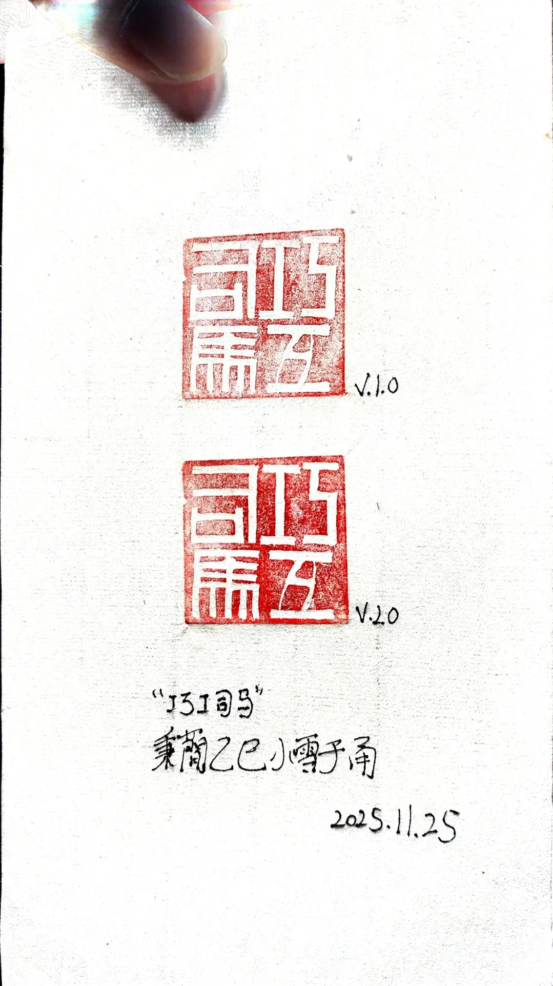 虽说内容(刀法)与样式(设计)完全融合,却所见非所得,结果要用印泥编译(铃印)出来。过程不能撤销,基本没有太多回旋余地,刻地好好的,印石一崩,刻刀一滑,说废就废。(不过我一般不予理睬,美其名曰“手工感💀”)