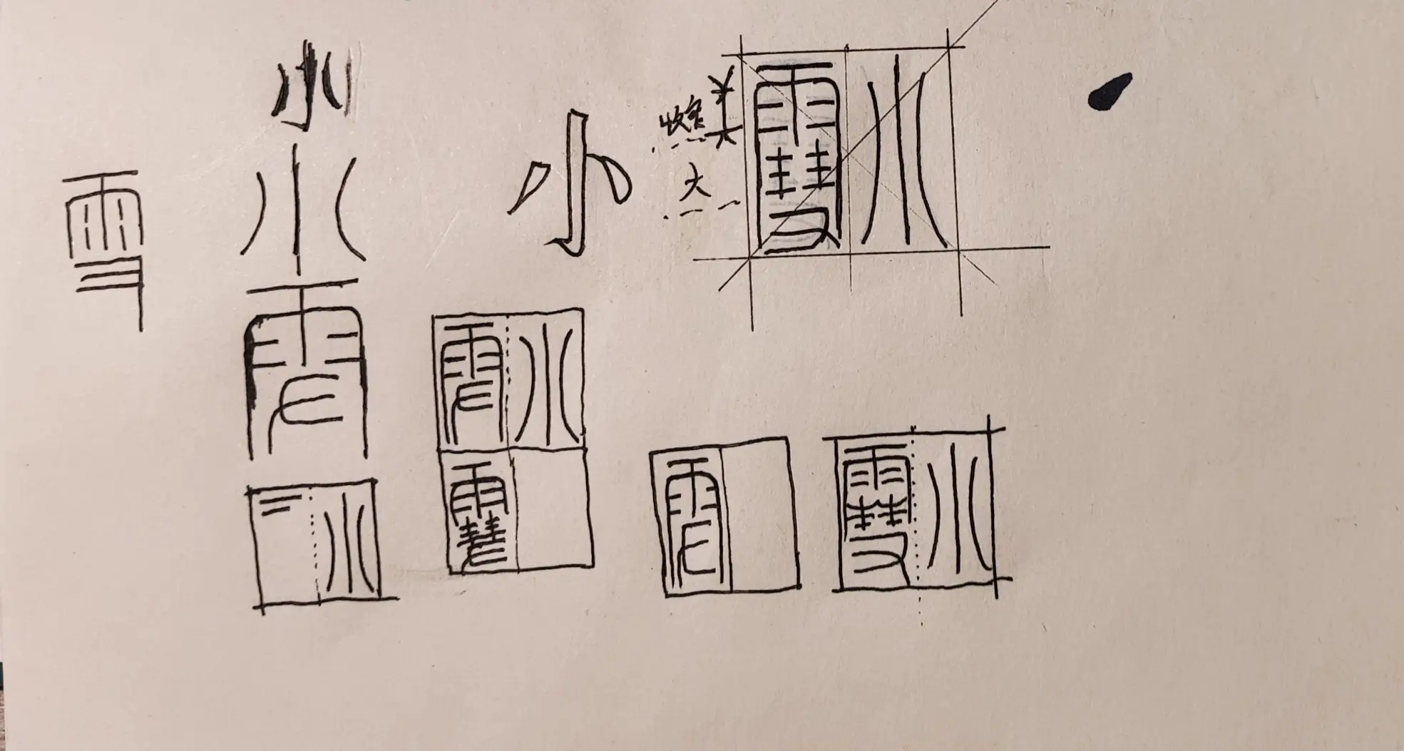 采用篆刻刀来勾描草稿,最后再刻,实际效果比水印上石差不多。