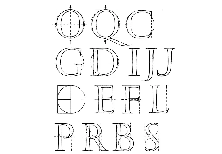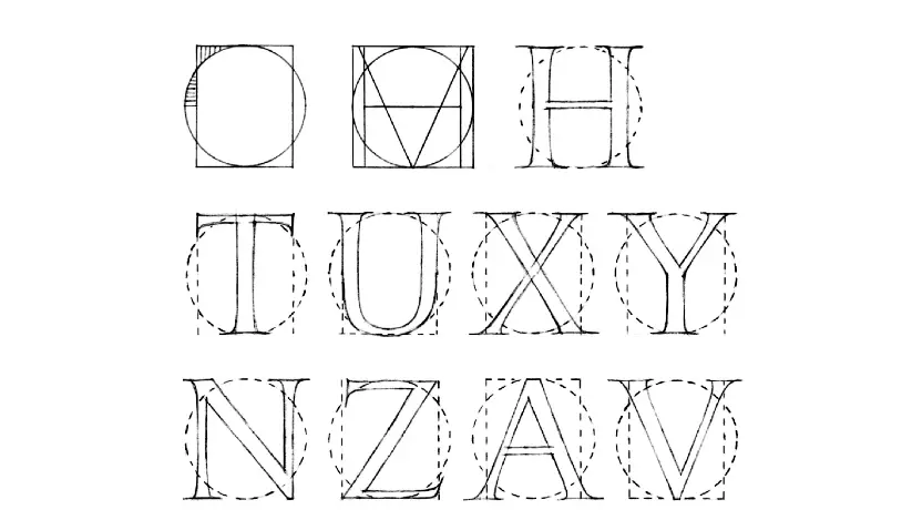 如前所述,罗马字的设计要求非常严苛。字母形状和比例、字干宽度与字母高度之间的关系(简称字重)、字干、粗斜线和细斜线以及曲线之间的相对宽度等等都有明确的要求。