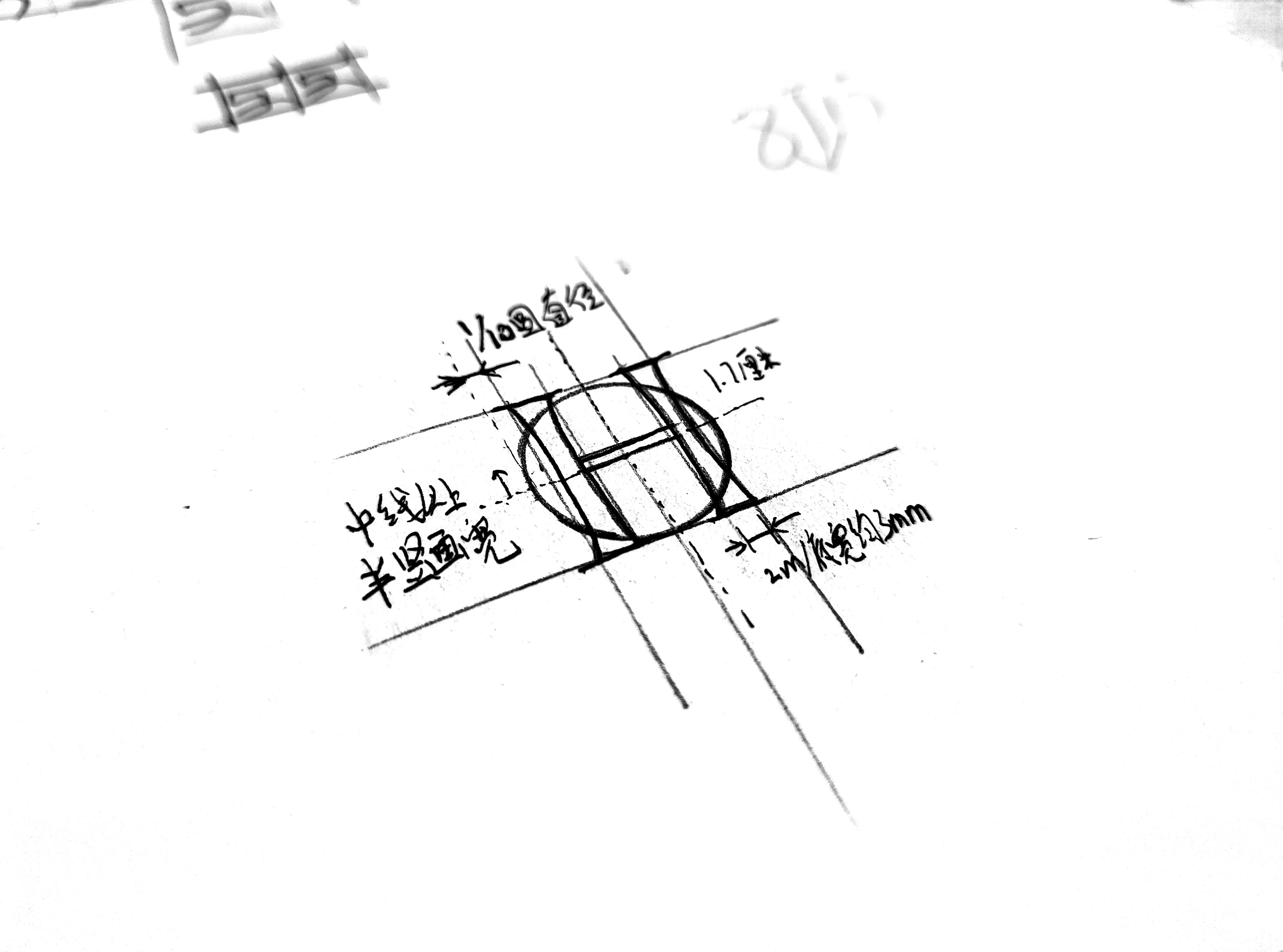- 字母 "H "的绘制方法是先画左横线,再画右横线,记住中间要比两端稍细,最后加上上下锯齿。一般的光学原理是,如果要在中间高度显示某物,就必须将其略微抬高,因此 "H "横线的底边要放在中心线上。水平笔画的宽度约为垂直笔画的一半。